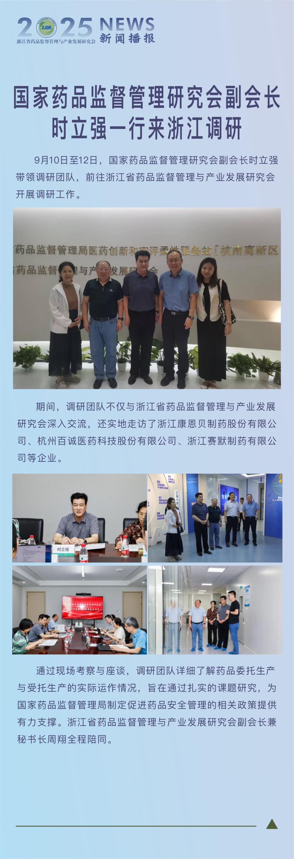 国家药品监督管理研究会副会长时立强一行来浙江调研